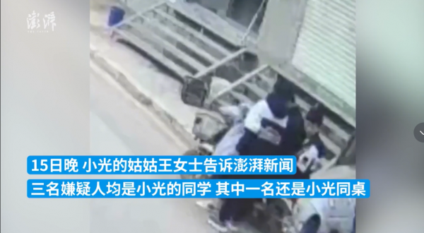 3月15日,小光的姑姑回应,三名嫌疑人与小光是同班同学,其中一名还是同桌,三人的年龄都是13岁左右,不到14岁。