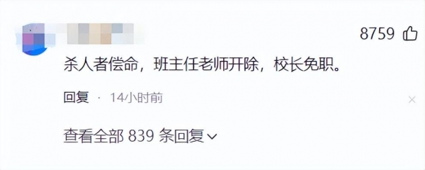也有网友认为此事,学校难辞其咎,难逃罪责,班主任和校长一定要承担相应的责任,否则难以平民愤。