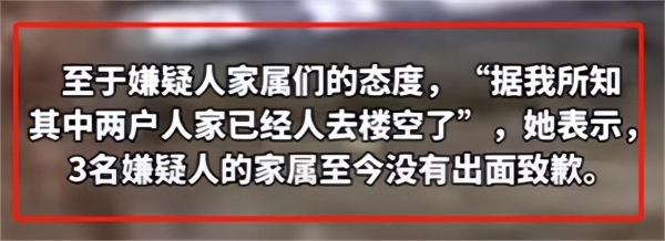 据媒体报道,三名嫌疑人的父母至今都没有出面道歉,甚至其中两家已经人去楼空了,他们根本不愿意承担身为监护人的责任,只想一走了之,从而逃避责任。