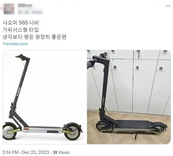 ▲韩国网友在购买中国产智能滑板车后,点评性能"超乎想象"。图片来源:社交媒体截图