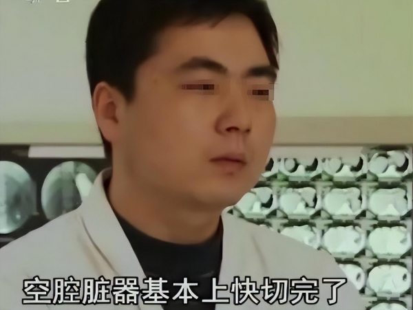 主刀医生刚在其腹部切开一个小口子,顿时就不停地有异物喷出。