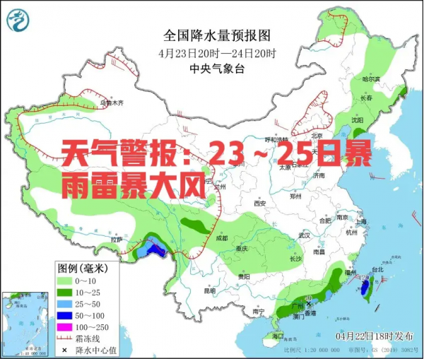 天气警报:23~25日暴雨雷暴大风、冰雹袭击广东、广西、福建,出行需谨慎。