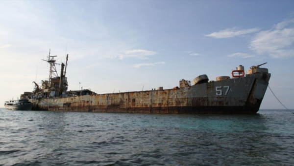 事情起因不外乎是菲律宾一艘军舰长期非法"坐滩"在中国固有领土仁爱礁上。这艘名为"马德雷山号"的老旧军舰,已经在仁爱礁搁浅24年之久。舰体早已破败不堪,随时面临解体,动力系统也无法正常运转。因此,这艘军舰想要自行离开已经是毫无可能。而这种"破船打桩"的做法,正是菲律宾方面的蓄意所为,目的就是想长期占据仁爱礁,充当其岛屿扩张主张的"据点"。