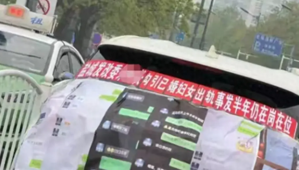 江苏盐城,一位50多岁的公公,别出心裁,把儿媳妇出轨的证据打印成海报,张贴在车尾玻璃上,并且开着车在闹市区巡回展览。