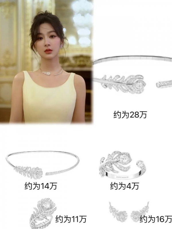 除此以外,杨紫的这套奢牌珠宝同样造价不菲,从项链到手镯再到戒指,上面的羽毛配饰十分吸睛,总价位要超过70万。看得出来,杨紫这次远赴巴黎,确实在时尚资源方面下了不少功夫。然而,虽然杨紫努力靠近品牌方,仍旧没有得到皆大欢喜的结果。例如,她佩戴的这套珠宝并非最新出炉,之前周冬雨和薛凯琪都曾戴过。