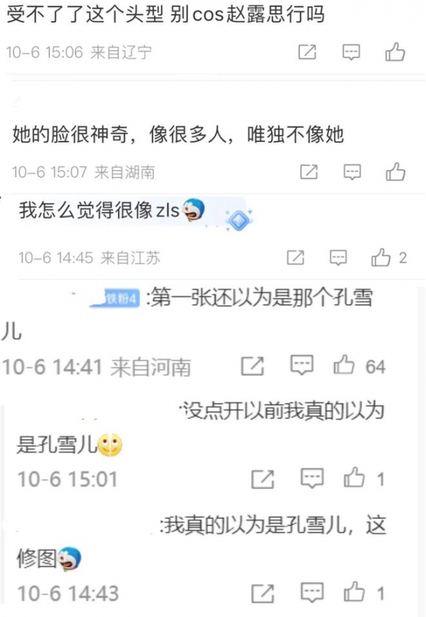 虽然整体氛围堪称完美,但很难辨识出这就是杨紫。要是没有放大照片,精修版的杨紫还被网友错认为赵露思和孔雪儿。对比一下,这三人的五官轮廓,还有滤镜氛围确实有些傻傻分不清。