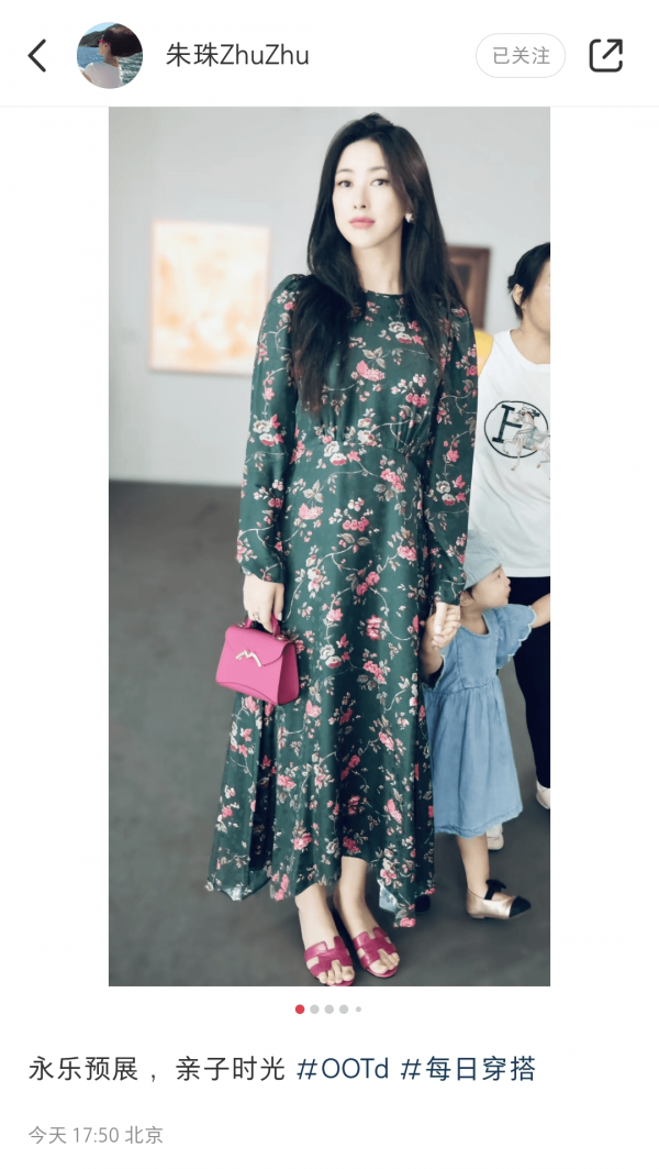 原标题:朱珠带娃看画展,1岁女儿帮妈妈拎4万元包包,保姆爱马仕T恤抢镜