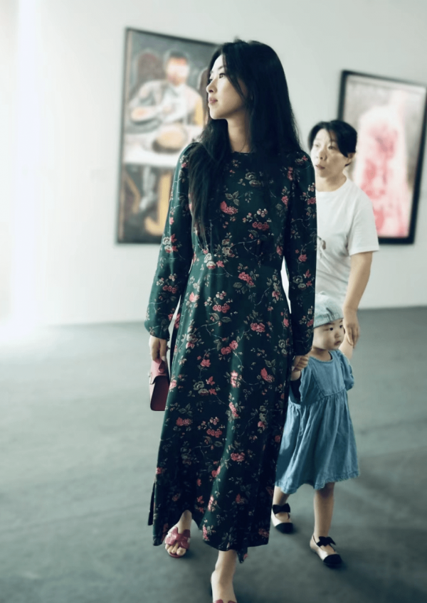朱珠喜欢艺术,经常带着女儿看画展,此次丈夫不在身边,但有保姆阿姨同行。