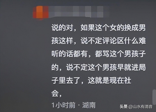 如果这个女的换成男孩这样,说不定评论区什么难听的话都有,都骂这个男孩子的,说不定这个男孩早就进局子里去了,这就是现在社会!