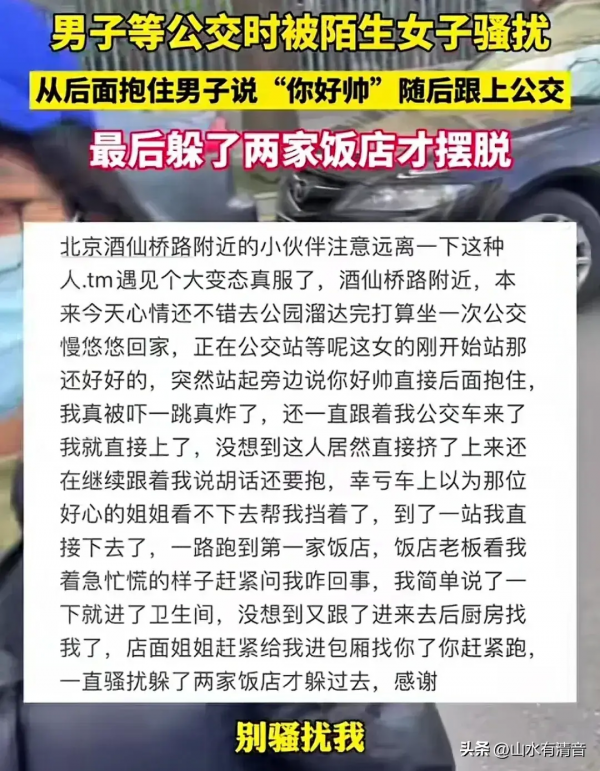 小伙路边突然被陌生女子抱住,挣脱后遭追喊"你好帅!",还挤上公交骚扰