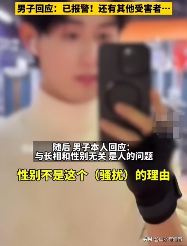 男生也出来露脸回应,自己已经报警了!并表示:性别不是骚扰的理由!与长相无关!