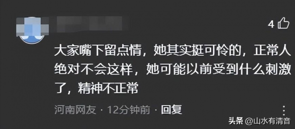 大家嘴下留点情,她其实挺可怜的,正常人绝对不会这样,她可能以前受到什么刺激了,精神不正常