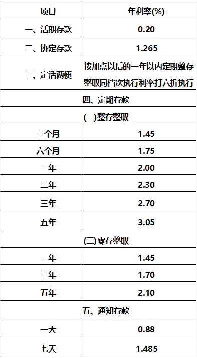 5月9日,柳州市区农村信用合作联社发布公告对利率进行调整,调整之后,最新官方挂牌利率一年期为2%,两年期为2.3%,三年期为2.7%,五年期为3.05%。