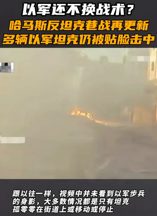 在这段广为传播的视频中,我们可以看到多辆以军坦克在哈马斯的反坦克巷战中被击中。值得注意的是,这些坦克似乎是在孤零零的情况下移动或停止,缺乏步兵的保护。