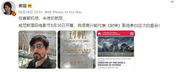 费翔也亮相威尼斯电影节了,他刚刚忙完封神的路演,跑了29个城市,一场不落,他还有这个精力亮相电影节红毯,果真是劳模。在出发前他就发文通知粉丝,可见他的兴奋。