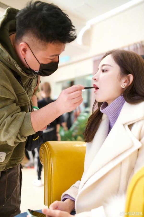 画面中的古力娜扎穿着黑色的卫衣,悠闲的坐在房车里,任由造型师摆弄着自己的秀发,而她干净而又清秀的脸庞也特别的抢镜,看上去更加的清纯可人了。穿着白色风衣的古力娜扎,也同样十分配合的任由造型师替自己化妆,而这个侧颜也同样美得让人无可挑剔了。