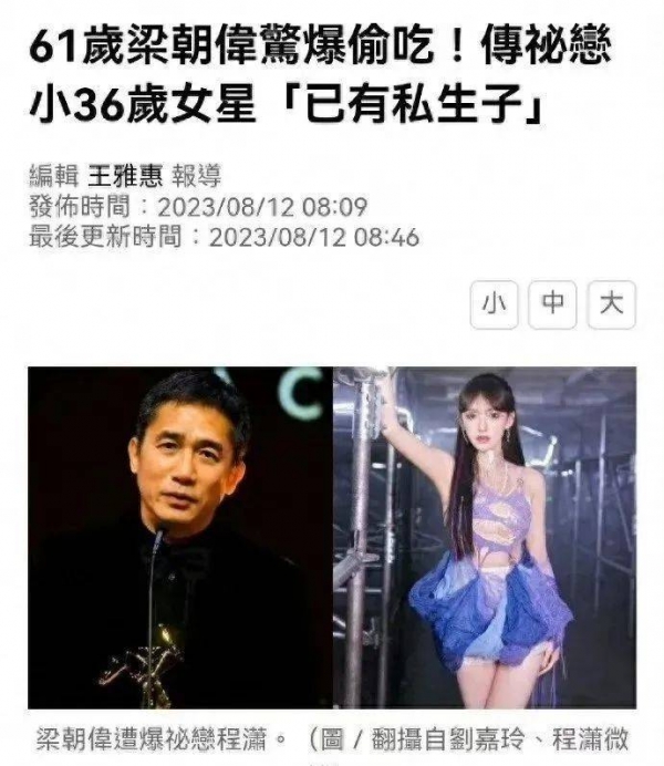 老牌影帝梁朝伟近日被曝出惊天大瓜!8月12日,有媒体爆料称梁朝伟与女艺人程潇秘密热恋,梁朝伟在日本有一处房产作为与情人的爱巢,女方更为他生下了孩子。