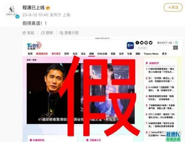 12日中午,程潇的团队直接辟谣了这个八卦,称:"假得离谱!!!" 一个大大的红色的假字印在新闻截图上,显示出程潇一方对这个消息的无语。