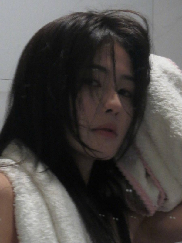 白鹿晒浴室湿发照纯欲十足 穿黑色吊带性感随性