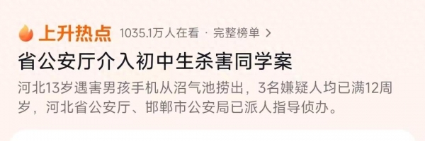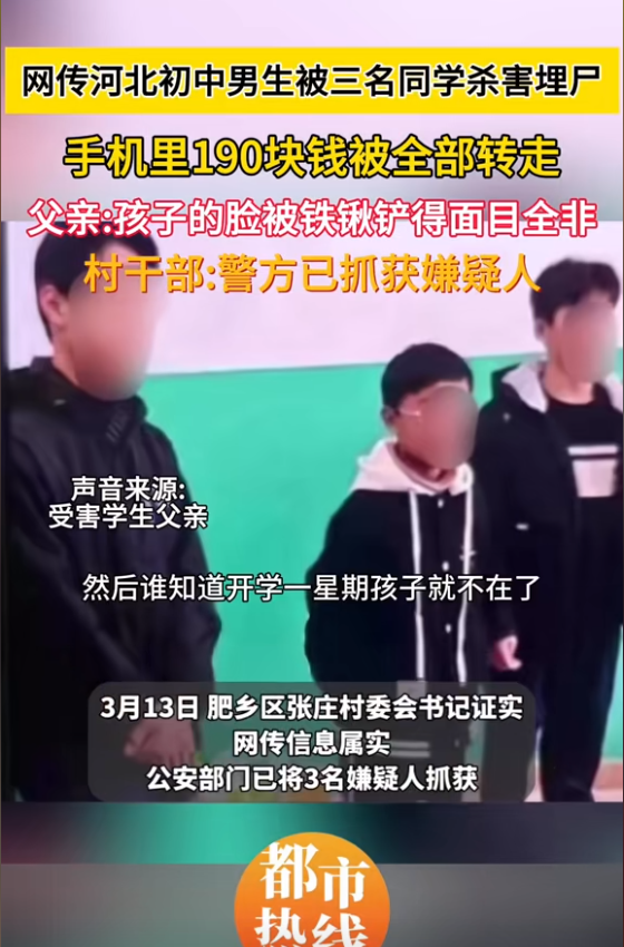 近日,一起发生在河北的霸凌案件引发全国关注。据媒体报道,河北省公安厅已介入初中生杀害同学案。