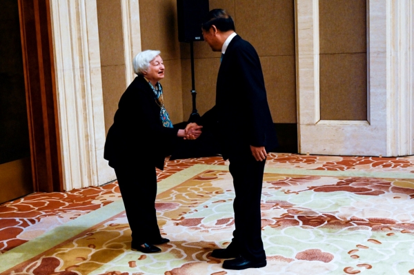 美国财政部长耶伦访华期间与中方官员握手的一个动作,令美国国内部分共和党人及媒体"破防"