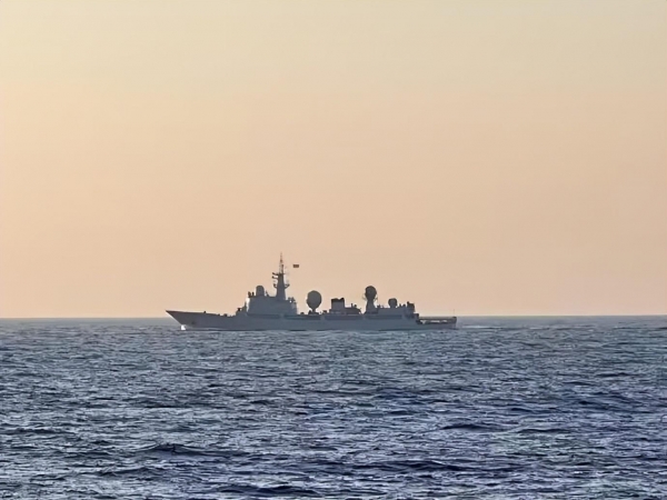 美军拍到了这样的画面,一艘中国海军054A导弹护卫舰正在跟随着前方的"罗斯福"号航母,在黄岩岛海域自北向南航行。两船的距离大概只有5海里,在海上两艘军舰那已经是比较近的了。