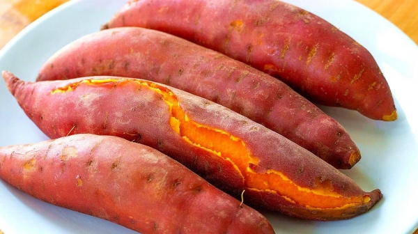 功效:红薯含有淀粉,胡萝卜素以及各种微量元素,可以保护人体上皮细胞的结构完整,抑制病毒活性;而红薯中的脱氢表雄酮能防癌抗癌。红薯中的淀粉,纤维素,能刺激肠道,吸收大量水分,促进食物软化,增强蠕动,从而达到通便的效果。红薯富含钾、β-胡萝卜素、叶酸、维生素C和维生素B6,这5种成分均有助于预防心血管疾病。钾有助于人体细胞液体和电解质平衡,维持正常血压和心脏功能。