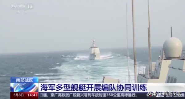 据央视新闻5月8日报道,南部战区海军某驱逐舰支队的遵义舰、海口舰、昆明舰、咸宁舰等多型主战舰艇组成训练编队,奔赴南海进行实战化训练。