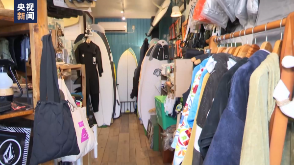 福岛县磐城市冲浪用品店店长 舟部贤一:一旦核污染水排放入海,冲浪的人必然减少,生意只会更难做,也许我只能再去工地干活了吧。
