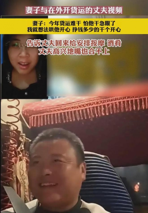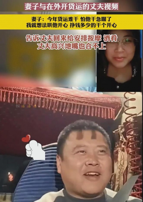 11月17日,山东,一段开货运的丈夫因货运难做而丧气,妻子逗得他开怀大笑的视频引发关注。网友直呼,家有贤妻,幸福啊。