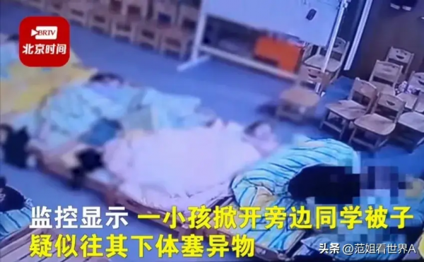 近日,山东菏泽东城社区香格里拉幼儿园午休期间,看视频,一名男和女童是睡在各自的小床上,男童没睡着,竟然掀开女同学的被子,双手伸进去脱下女童的裤子,并往女童下体塞各种异物,导致女童住院。