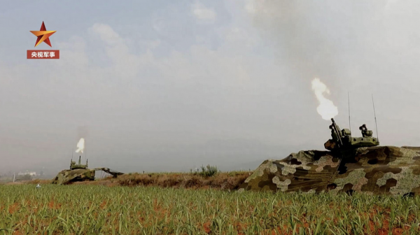 中国人民解放军南部战区组织陆军、空军部队在位中缅边境我方一侧举行联合实兵实弹演习,旨在检验战区部队快速机动、精确毁瘫、立体封控、联合打击能力。