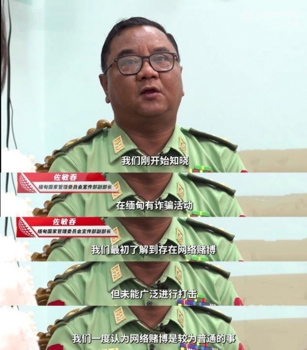 他在采访中称,在电诈活动刚兴起时,缅甸方面只以为是普通的网络赌博,没有引起重视,也没能进行广泛打击。直到中方向缅甸通报了电诈问题,并派遣了特使前往缅甸,在中方提醒下,缅甸方面才明白电诈危害,双方于是决定展开联合行动,彻底清除电诈。