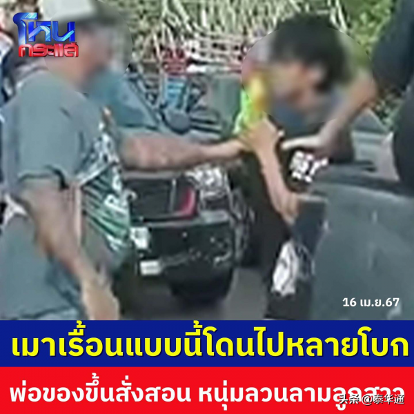 据了解,上述视频中的一幕发生在泰国北榄府府治县Phraeksa路段,4月15日下午,视频中的2名泰国男青年在上述路段过泼水节,期间有3名泰国女孩骑车经过上述路段,他们遂对着3名女孩泼水,她们被迫停车,而后2人遂往她们身上抹粉,还恶意做出摸女孩胸的无耻行为,毫不在意他人目光,女孩的父亲见状后不满,遂抓住2名男青年并当街掌掴进行教训,2人自认理亏当场求饶并道歉。
