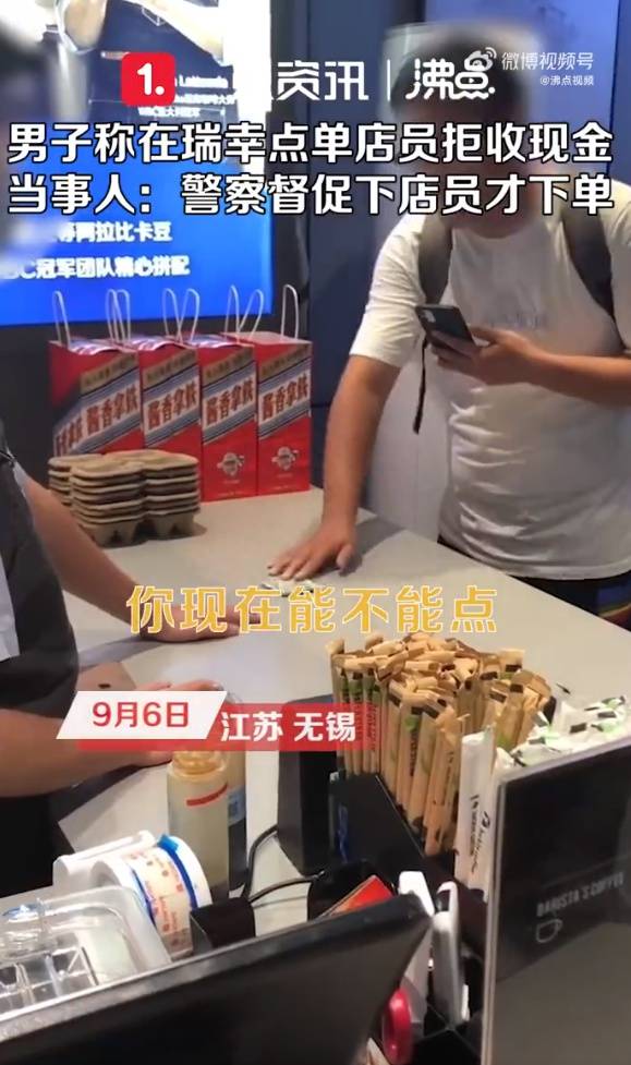 据湖北经视援引沸点视频报道,9月6日,江苏无锡一男子发视频称自己去瑞幸咖啡点单,店员拒收现金。