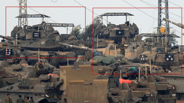 隶属于以军精锐装甲部队的梅卡瓦-4,普遍安装了制式化的顶棚