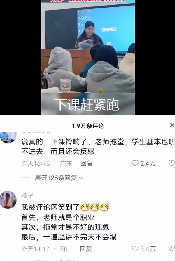 在很多老师看来,下课拖堂是为了学生好,他们可以学到更多的知识,同时也体现自己认真的教学态度。不过学生却并非这样想,课间休息十分宝贵,属于自由活动时间,不过却被老师打乱,学生们却敢怒不敢言。
