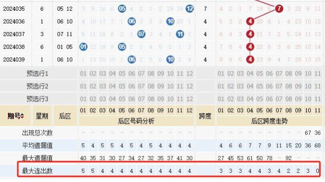 北京时间4月8日晚,体彩超级大乐透第24039期开奖,当期开奖号码为前区03 10 11 20 22,后区06 10。后区连续4期开出跨度4,这现象还是大乐透开奖首次发生!