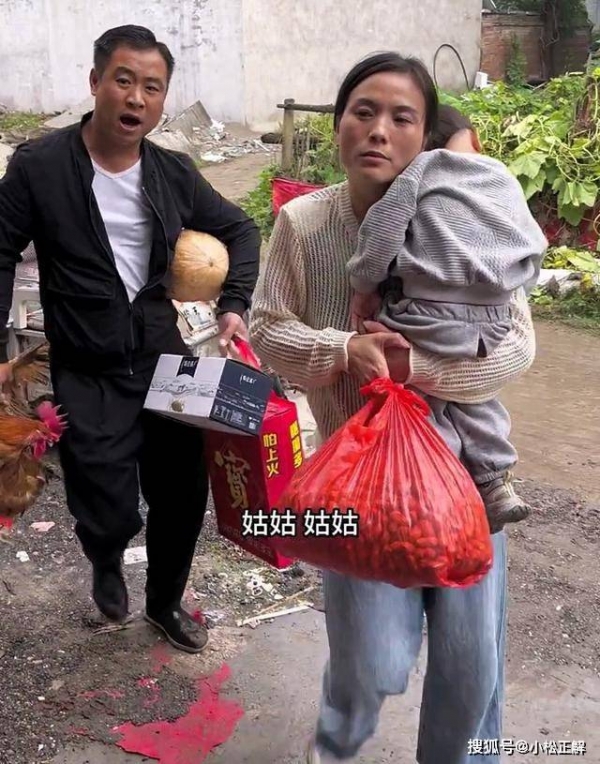 为了不失礼于人,男子准备了自家养的大公鸡,还有今年刚出的花生,打算顺便看一眼姑妈。