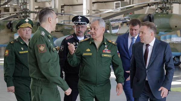【绍伊古视察军工厂】