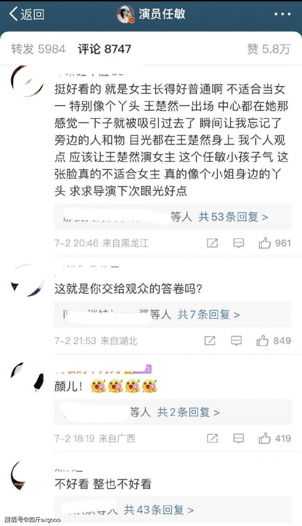 是的,你没看错,因为一部剧里的造型太丑,女主角任敏遭网暴了。
