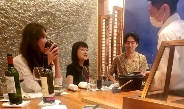 网友偷拍了一张林志玲跟丈夫的同框照,当时他们与亲友正在聊天,好像是在跟大厨说话。