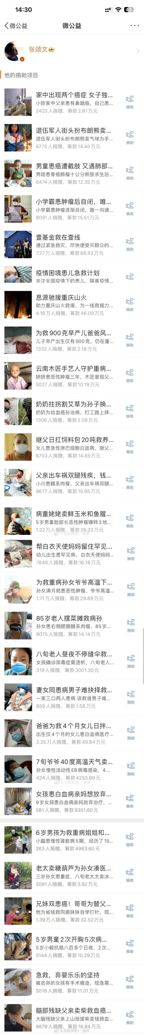 微博上发起的慈善捐款那么多,几乎资助不完,但他就像愚公移山一样,一个个认真地在资助。