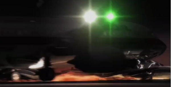 事故发生前几秒,可以看到降落中的飞机已经三轮着地并且改平滑行