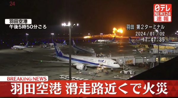 在1月1日,日本能登地区发生了7.6级地震,这是日本地区自2011年"3·11"大地震后最大的地震。而次日下午5点47分,日本东京羽田机场又发生了一起重大事故,日本海上保安厅执行救灾任务的dash8飞机与日航516航班在跑道上发生撞击,造成两架飞机完全损毁。
