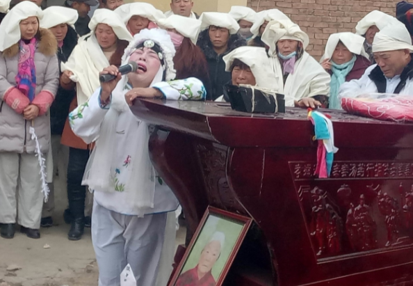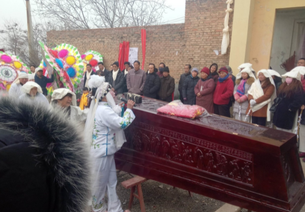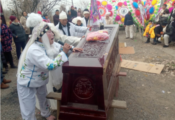 讲完死者的生平经历之后,武会霞就开始扶着棺材放声痛苦,