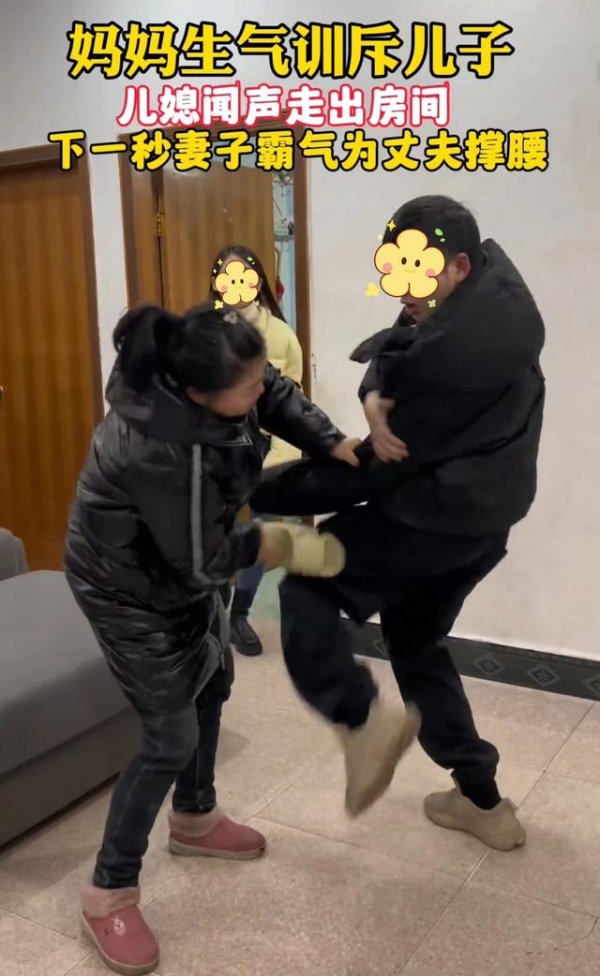 但是你见过婆婆在教训自己儿子,儿媳出来强势护夫的吗?这家人的举止让人令人大开眼界,不得不赞一句:这是人才!