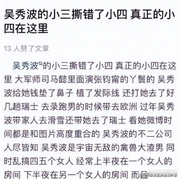而吴秀波和她的妻子也就很好的印证了这一点,不过吴秀波算是最肆意大胆的一个。