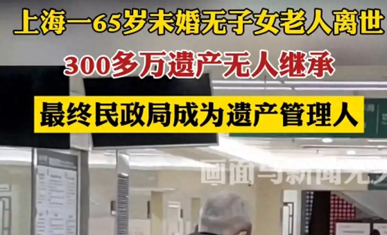 近日,上海,一位65岁未婚无子女老人离世,其300多万遗产无人继承。最终民政局成为遗产管理人引热议。