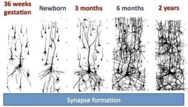 虽然怀胎 10 月,但大脑神经元数目的爆发,却主要集中在 2~3 月。